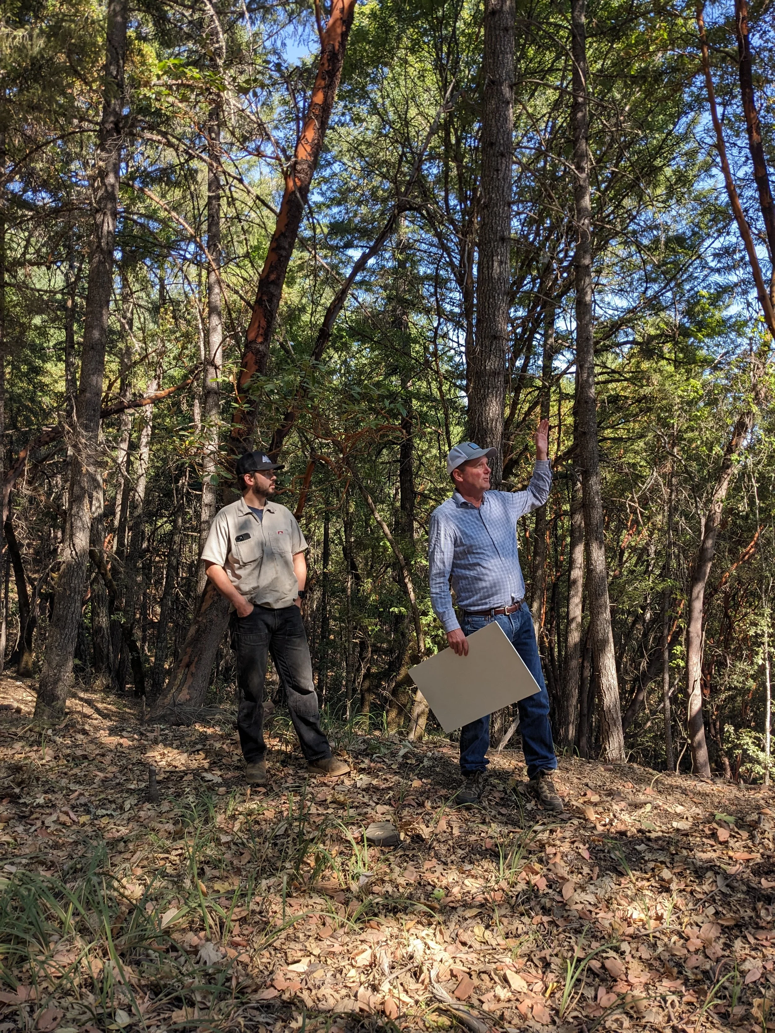 MRC Director of Forest Policy John Andersen and MRC forester Cody Easton on July 10 discussing the fuel break