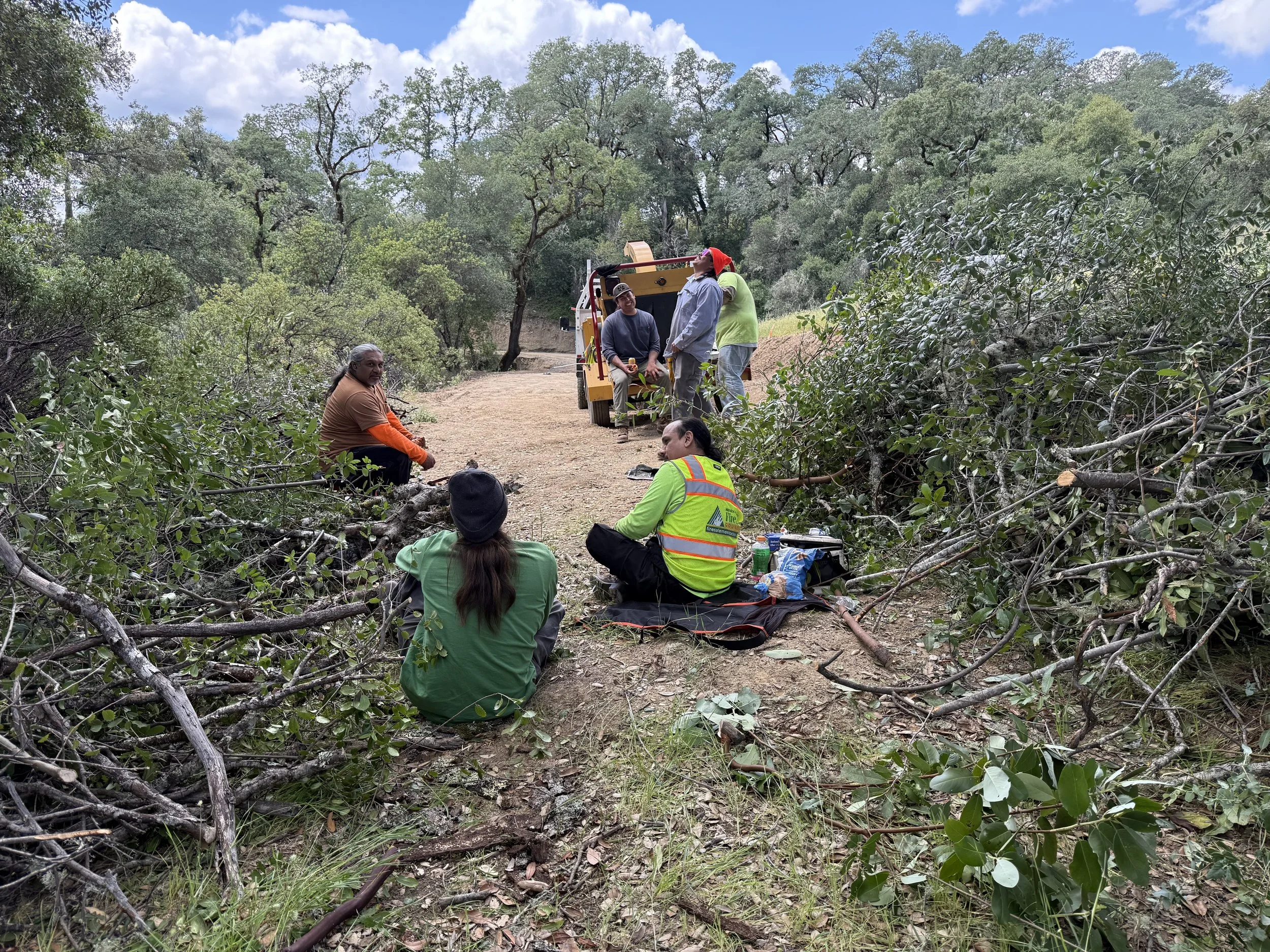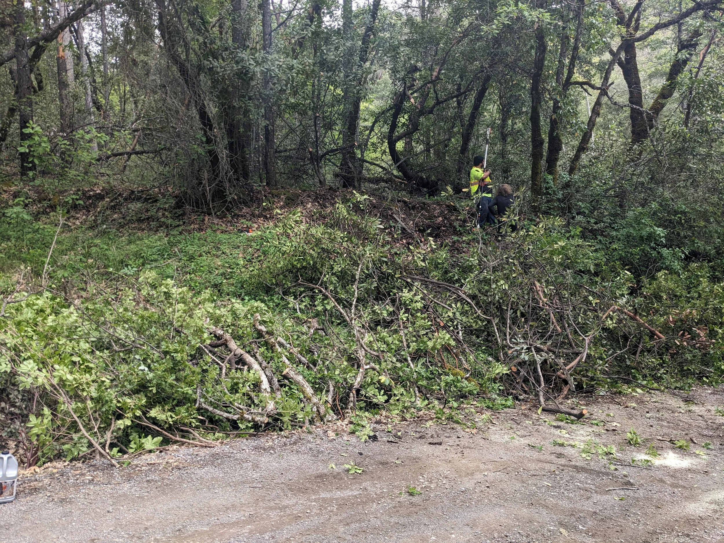 Nearly ten years after Tomki Road served as a major escape route from the Redwood Complex firestorm, a new Neighborhood Fire Safe Council is hard at work, clearing fuel from the roadside. “We’ve gotta make sure these escape routes are nice and open,” said Eric Patino, a member of the Mendocino County Fire Safe Council’s fuel-reduction crew. “We want the people and the community to be safe.” It was Saturday, April 14, and the crew was working alongside volunteers from the new Council.