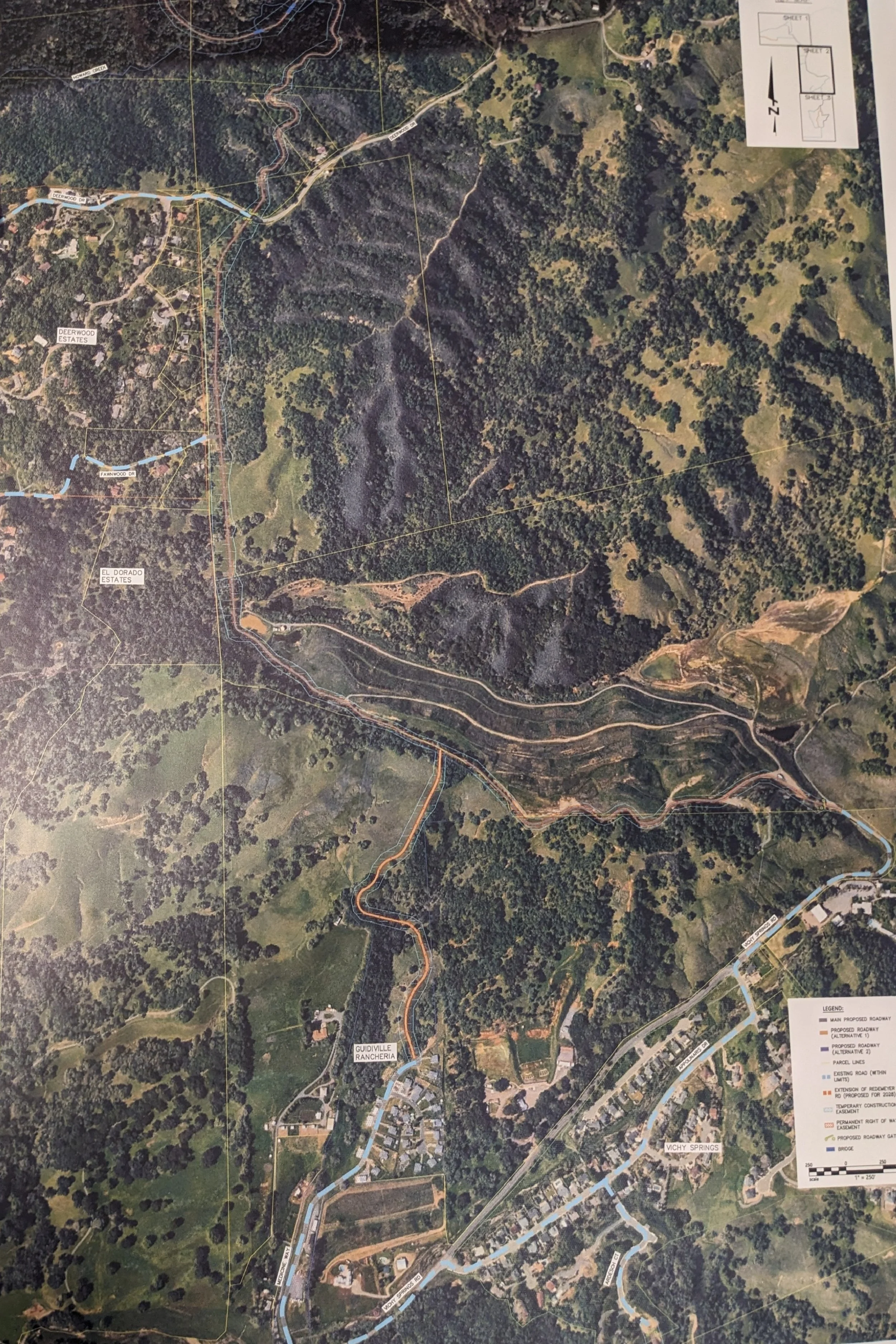 One possible route would provide a connection to Coyote Valley Dam and Lake Mendocino Drive, which could then provide an escape for residents in the subdivisions. Another would go behind, or to the east, of Deerwood Estates and connect to the existing street system in Vichy Springs. Another proposal is to use an existing private road, near Middle Subdivision Road.