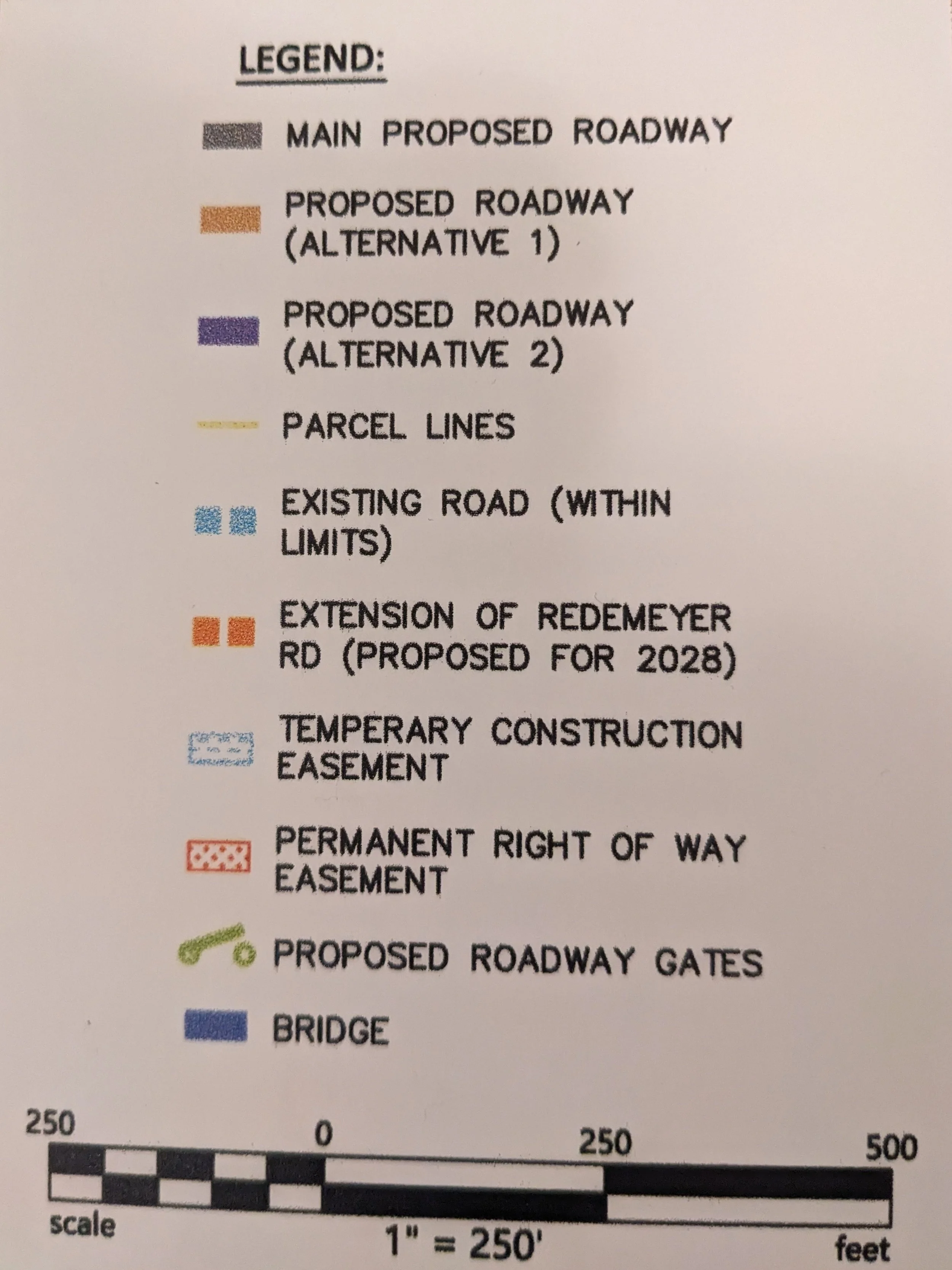 The proposed evacuation route is separate from another county plan to extend Redemeyer Road. That project could potentially start construction in 2029.